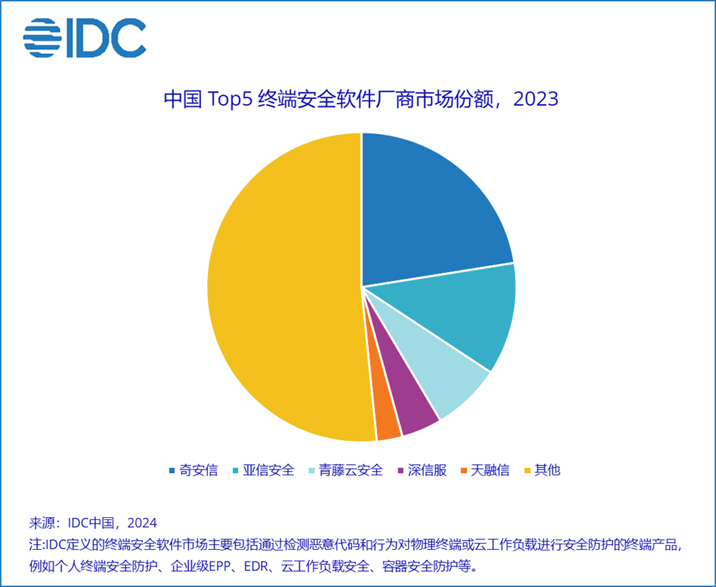 智通财经APP获悉,IDC最新发布的《中国IT安全软件市场跟踪报告,2023H2》显示,2023年下半年中国IT安全软件市场厂商整体收入约为169.8亿人民币(约合23.5亿元美元),同比上升2.7%。结合全年数据,2023全年中国IT安全软件市场规模达到277.9亿人民币,较2022年上升4.7%。