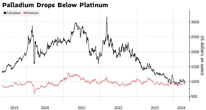 庄信万丰表示,钯的汽车使用量将下降约7%,使总需求降至973万盎司,市场缺口从去年的102万盎司降至35.8万盎司。至于铑,汽车消费量预计也将下降6%左右,从而使总需求下降4%,至106万盎司。庄信万丰表示,铑市场可能供应不足6.5万盎司,低于2023年的12.5万盎司。