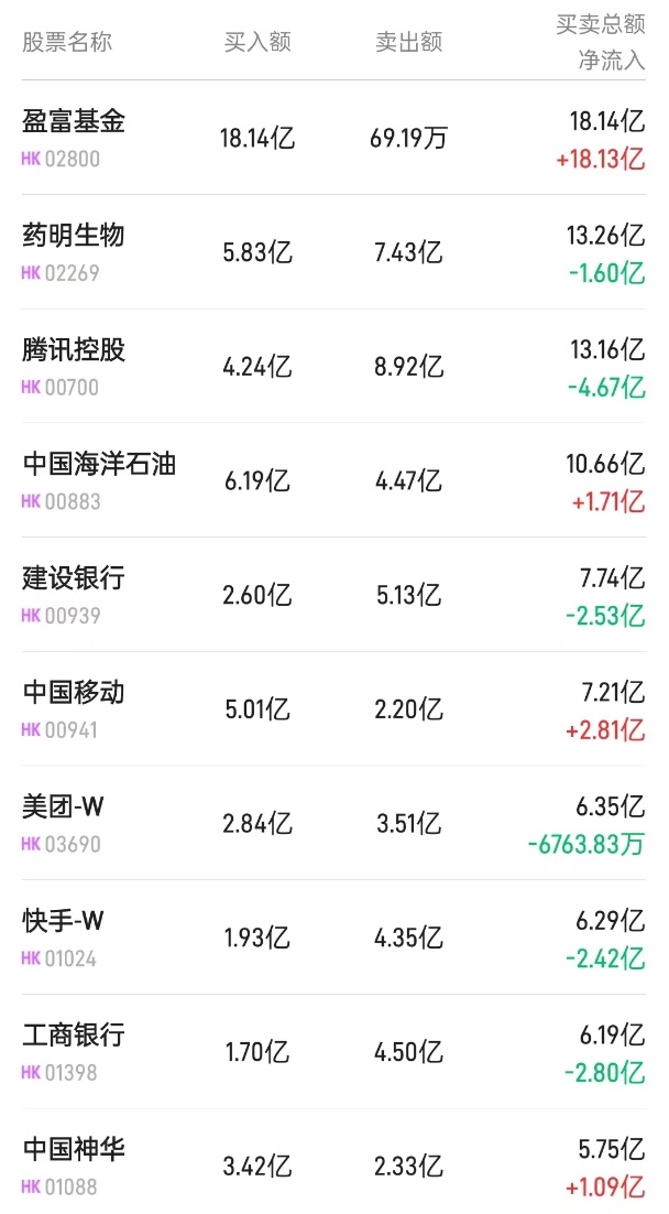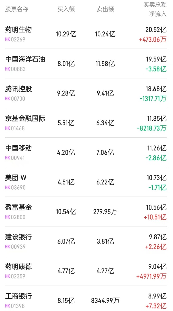 此外,中国移动(00941)、中海油(00883)分别遭净卖出505万、1.86亿港元。
