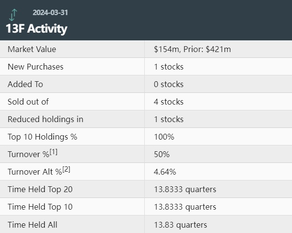 第一季度,阿里巴巴持仓总市值为1.54亿美元,上一季度为4.21亿美元,环比下降约63.4%。一季度阿里巴巴新增标的1只,清仓标的4只,减持标的1只。
