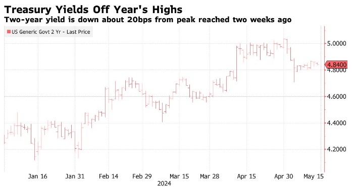 自3月份上次通胀数据公布以来,有迹象表明美国劳动力市场正在走软,这使得投资者逐渐加大了对美联储今年放松政策的押注。市场重新燃起了对9月(而非11月)首次降息的预期,并恢复了两次(而非一次)降息的押注。对利率敏感的2年期美国国债收益率周二下跌两个基点,至4.84%,较两周前的峰值下跌了约20个基点。