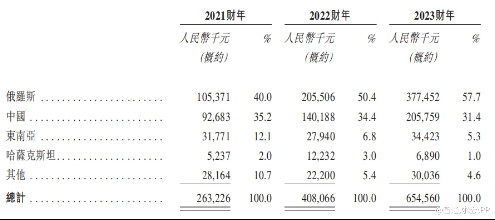 来自俄罗斯收入占比近六成