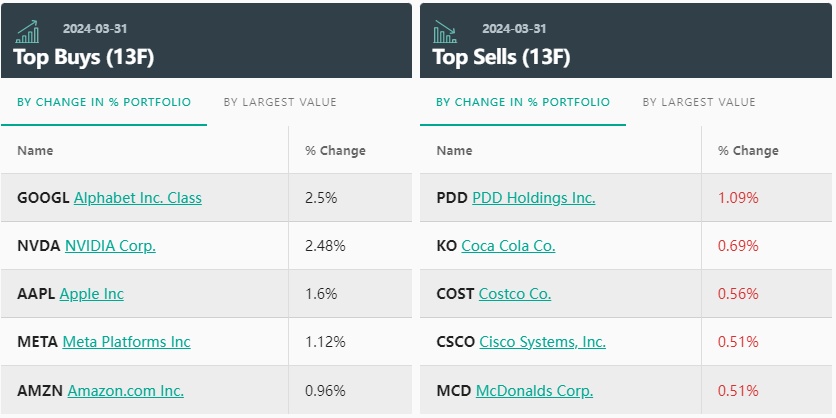 相比之下,桥水本季度对必需消费品板块的持仓权重降幅最大,前五大卖出标的包括:拼多多(PDD.US)、可口可乐(KO.US)、好市多(COST.US)、思科(CSCO.US)以及麦当劳(MCD.US)。值得注意的是,被誉为全球四大粮商之一的美国邦吉公司(BG.US)以及美国食品控股公司(USFD.US)均被清仓。