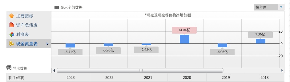 值得一提的是,公司的现金流流出日益增大,2020年至2023年,公司现金及现金等价物净增加额分别为14.04亿元、-2.68亿元、-3.76亿元、-6.41亿元,持续锐减。尤其是业绩回暖的2023年,并没有真金白银流入公司,而是难挡公司现金流持续加大流出的困境。