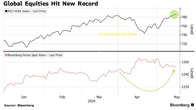 3月份,在美国公布通胀数据之前,全球股指也曾出现类似的攀升,但美联储的鹰派立场和伊朗与以色列的冲突阻碍了该指数的上涨。