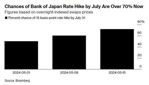 隔夜指数掉期显示,日本央行届时上调基准利率的可能性约为70%,高于本月早些时候的约50%。