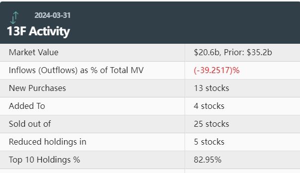 据统计数据,PIF第一季度美股持仓总市值达到206亿美元,上一季度的持仓总市值则约为352亿美元,环比减少近40%。详细数据显示,PIF的持仓组合中新增13只个股,增持了4只个股,减持了5只个股,清仓了25只个股。其中前十大持仓标的占美股总持仓市值的82.95%,反映出PIF前十大持仓的总计权重非常高。