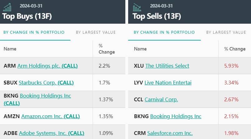 沙特主权财富基金PIF在第一季度的前五大卖出标的分别为:公用事业行业ETF(XLU.US)、Live Nation Entertai(LYV.US)、嘉年华邮轮(CCL.US)、Booking以及赛富时(CRM.US)。其中Booking正股在第一季度被PIF清仓,赛富时、嘉年华邮轮以及韩国电商巨头Coupang Inc (CPNG.US)等热门标的也被PIF在一季度清仓。