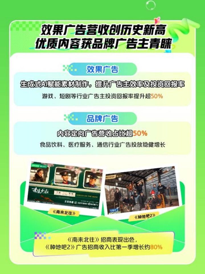 生成式AI应用和高品质内容,助力广告、内容发行实现业绩突破。当季在线广告营收15亿元,同比增长6%。其中,效果广告营收同比两位数增长。这主要得益于生成式AI赋能广告提质增效,AI制作广告素材带动游戏、短剧等行业广告主投资回报率提升超50%。生成式AI在拉动广告增长,特别是效果广告方面仍有巨大潜力:通过爱奇艺提供的AI工具,广告主可以自助式、自动化生成丰富的高品质广告素材,同时降低成本;在广告投放上,依托模型架构升级和投放策略迭代,生成式AI使广告投放更加精准、个性化,帮助广告主提升流量变现效率。依托优质内容,当季超过一半的品牌广告营收来自内容定向广告,爱奇艺原创剧集《南来北往》招商表现出色,《种地吧2》的广告招商收入比第一季增长约80%。二季度是品牌广告投放的旺季,随着爱奇艺综艺供给增加,预计品牌广告同环比均会有所复苏。得益于多部重点内容的发行,爱奇艺一季度内容发行营收创纪录地达到了9.28亿元;其他营收为7.18亿元。