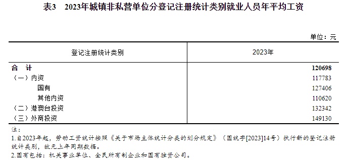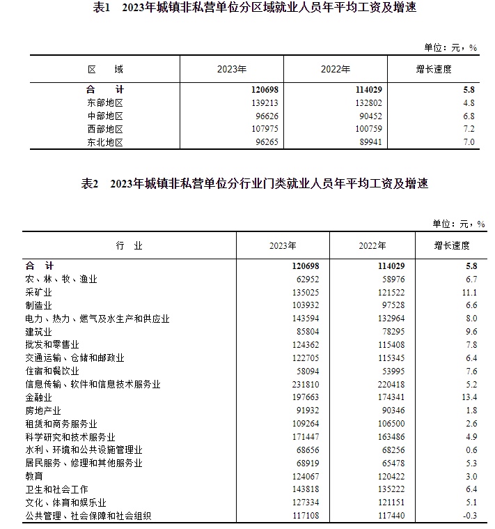 2023年,全国城镇非私营单位就业人员年平均工资为120698元,比上年增加6669元,名义增长[1]5.8%,扣除价格因素实际增长5.5%。
