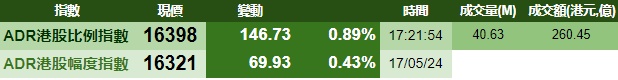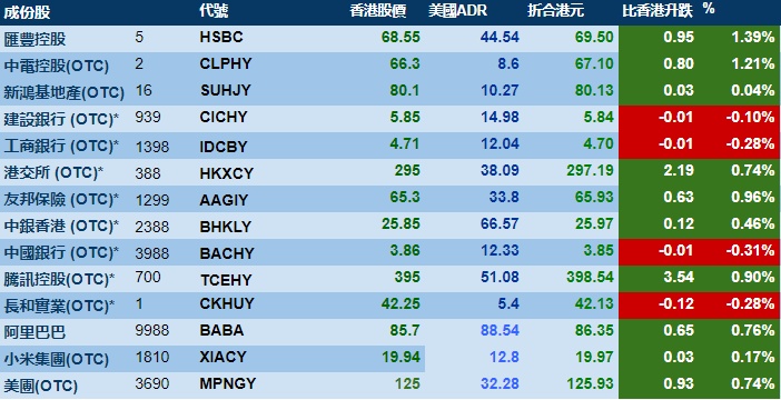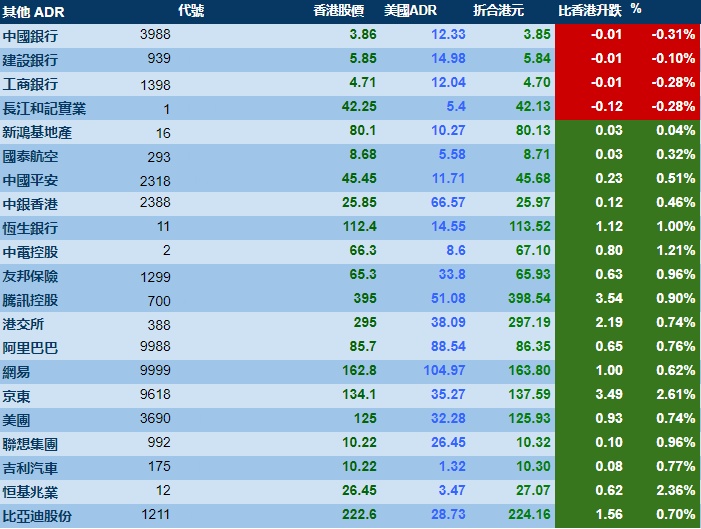 智通财经APP获悉,周五美股三大指数涨跌不一,港股ADR指数上涨,按比例计算,收报16398点,较香港收市上涨146.73点或0.89%。