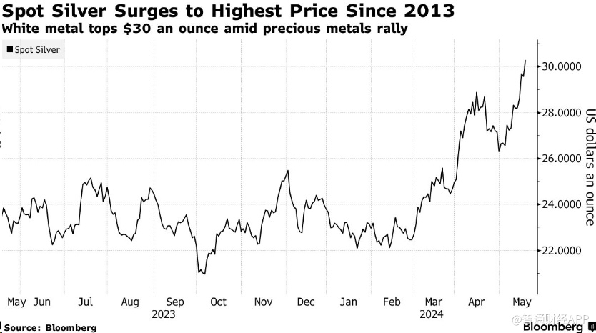 道明证券资深大宗商品策略师Daniel Ghali表示,银价突破30美元可能引发交易所交易基金(ETF)的大量买盘活动,从而加大白银供不应求的风险。