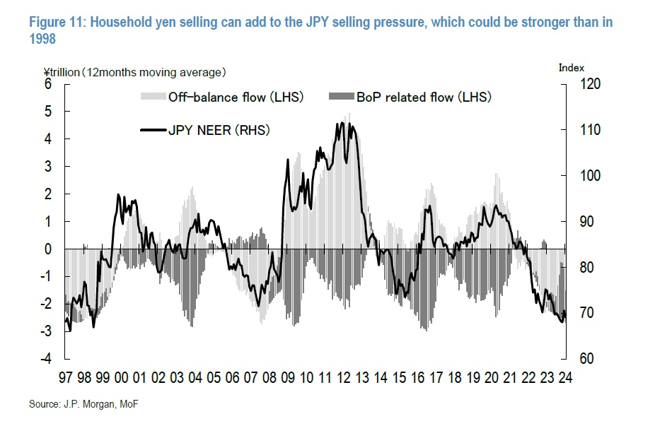 如果日元抛售与日本家庭大规模购买外汇资产同时发生,对日元的抛售压力可能超过1998年。