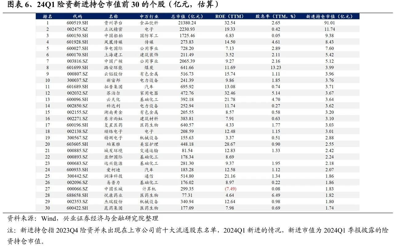 个股层面来看,险资Q1重点流入各行业的龙头,包括贵州茅台、立讯精密、中国电信、浙商银行等。