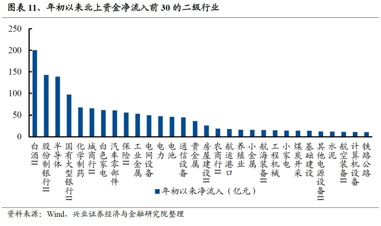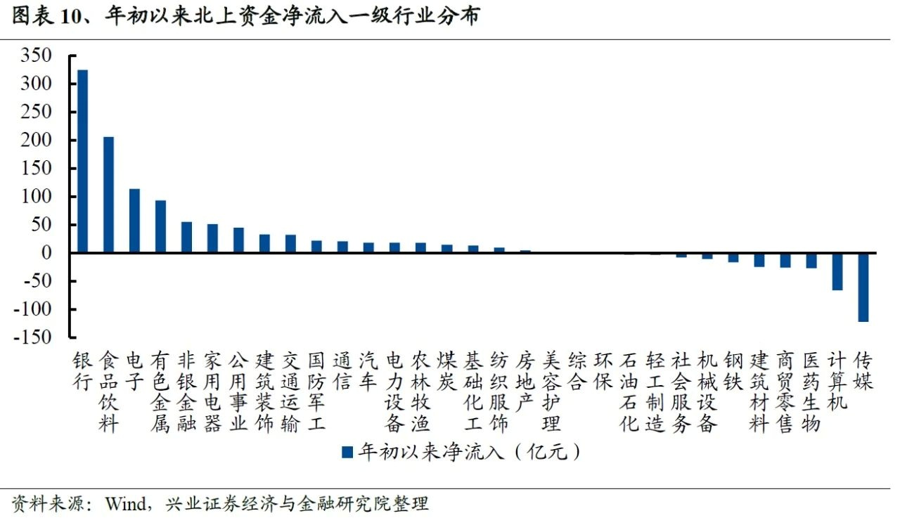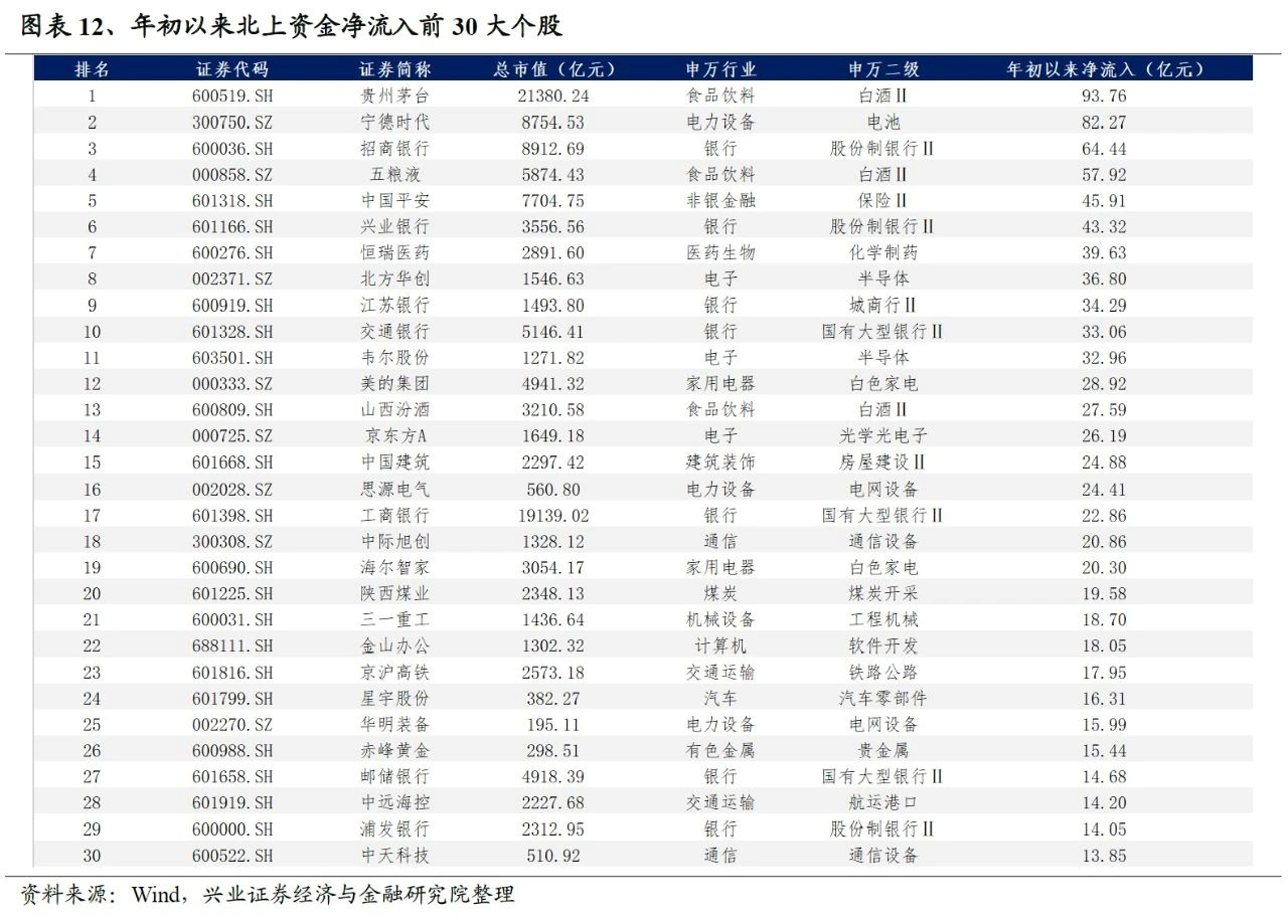 个股层面看,外资依然聚焦龙头,年内重点加仓食品饮料、新能源、银行等行业的大市值龙头。