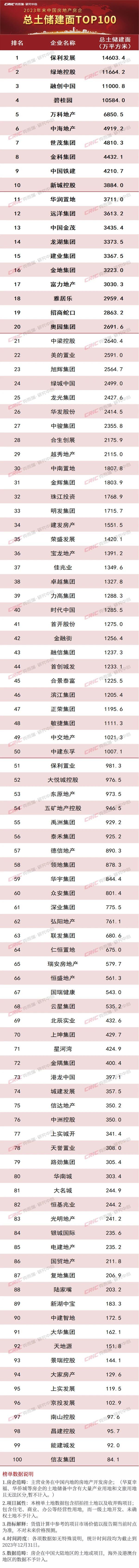 总土储货值TOP100的房企中,仅有6家房企总土储货值超过万亿,与2022年末持平,且总货值过万亿的企业仍为保利、绿地、万科、融创、碧桂园和中海保持不变;其次5000-10000亿元梯队减少1家、3000-5000亿梯队大幅减少8家。