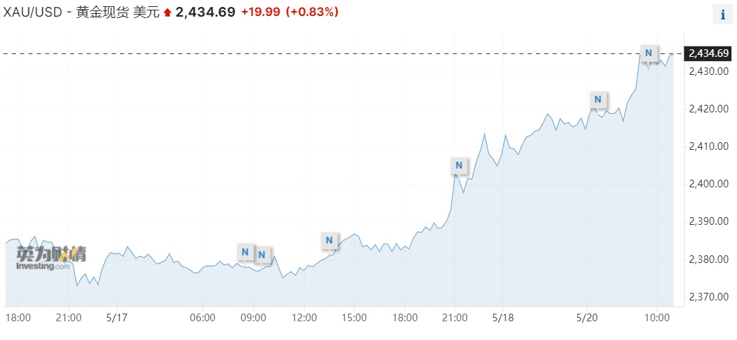 近几个交易日,交易员加大押注美联储最早可能在9月降息。在上周数据显示美国4月通胀放缓程度大于预期之后,美元下跌、美债上涨,为黄金提供了支撑。据商品期货交易委员会的数据,截至5月14日当周,交易Comex期货的对冲基金将黄金多头押注提升至三周高点。