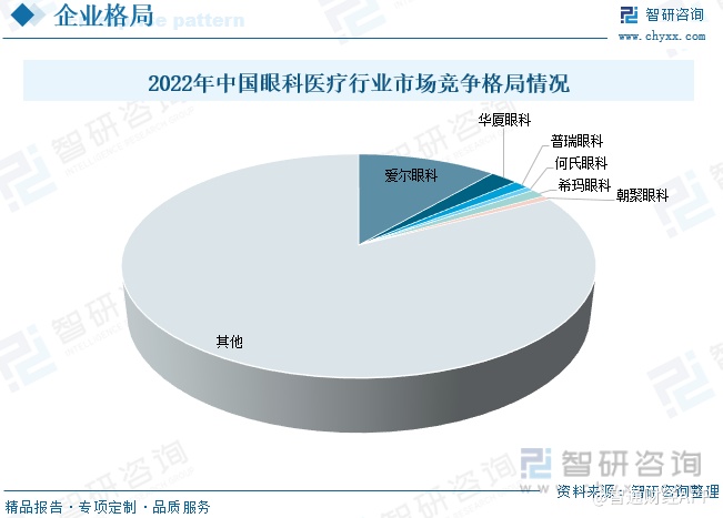 此外,以营收规模来看,朝聚眼科的营收规模相对于爱尔眼科、华厦眼科、普瑞眼科等一众头部企业来说也相差甚远。据智研咨询统计,目前在眼科医疗服务行业,爱尔眼科的市占率远超其他企业,2022年市场份额约为11.3%,且其门诊量和手术量也均位居行业前列。