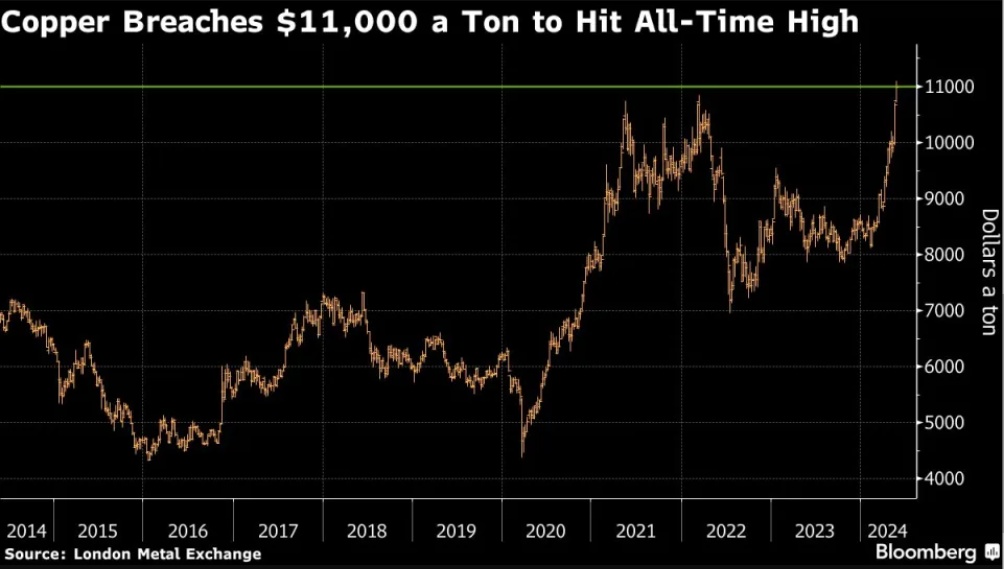 自今年年初以来,铜价已累计上涨逾四分之一,引领了主要工业金属的全线上涨。黄金和铜双双上涨至创纪录水平,这两种金属都得到了美联储今年将开始降息的乐观情绪的支撑。
