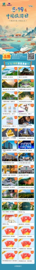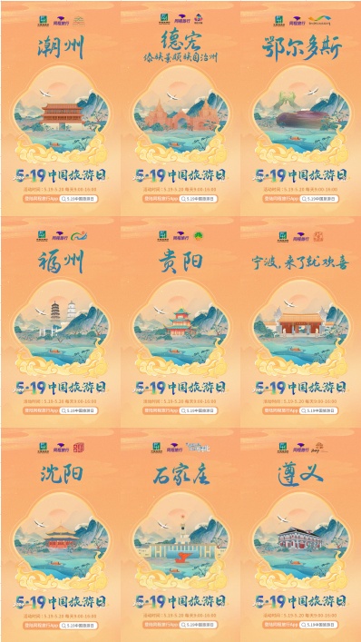 5月19日,为积极响应文化和旅游部2024年中国旅游日活动,同程旅行围绕吃住行游购娱6大系列、“畅游中国,幸福生活”主题,携手潮州、沈阳、石家庄、宁波、鄂尔多斯、贵阳、德宏、遵义、福州9大城市,推出“519中国旅游日”主题盲盒活动。此次盲盒活动共计上线相关产品超过15万份。通过景点、酒店、度假、文创好物等超百万补贴好礼,同程旅行与各目的地将用实际行动助力游客出行,畅游祖国大好河山。