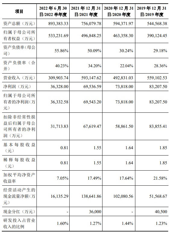 财务方面,2019年度、2020年度、2021年度、2022年1-6月中乔体育分别实现营业收入约55.91亿、49.28亿、59.31亿、30.99亿元人民币;同期,净利润分别约为8.32亿、7.38亿、6.95亿、3.63亿元人民币。