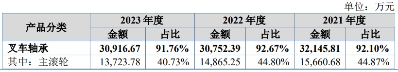 招股书披露,万达轴承主营业务为叉车轴承及回转支承的研发、生产和销售,主要产品包括叉车轴承(主滚轮轴承、侧滚轮轴承、链轮轴承、复合轴承、复合轴承组件)、回转支承等。公司产品销往全国各地及东南亚、美国、欧洲等国家和地区,被广泛应用于工程机械、港口机械、轧钢机械、矿山冶金机械、煤矿机械、石化机械、物流机械、智能装备、特种装备等诸多领域。公司主要客户包括安徽合力、杭叉集团、中国龙工、丰田叉车、凯傲集团等国内外知名叉车企业。