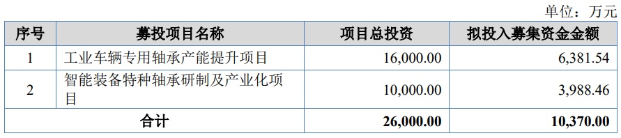 据了解,万达轴承募集资金扣除发行费用后的净额将全部投资于以下项目: