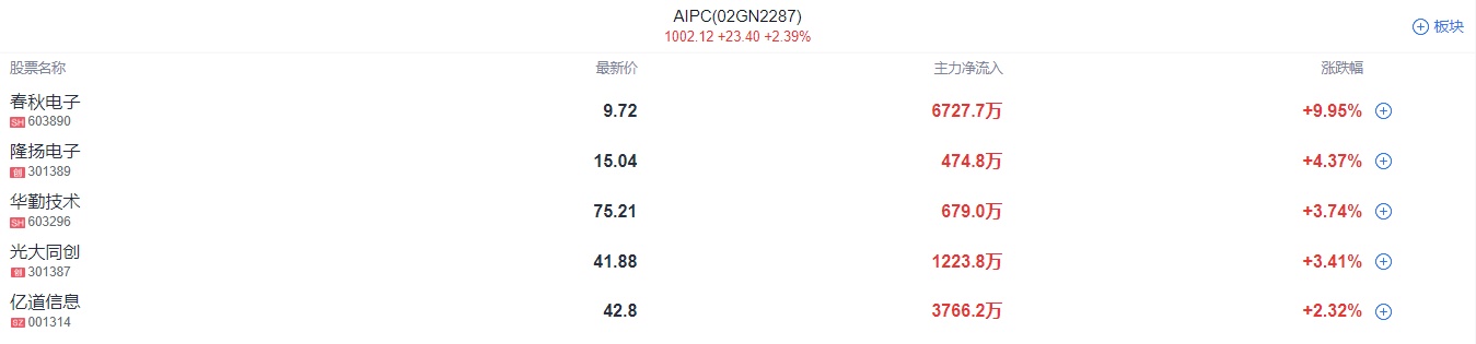 AI PC、AI手机等消费电子概念股震荡反弹,英力股份20%涨停,沃格光电、春秋电子涨停,思泉新材、隆利科技等涨幅居前。
