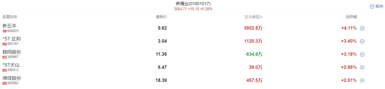 养殖业板块一度,正虹科技2连板,新五丰、京基智农、晓鸣股份等跟涨。
