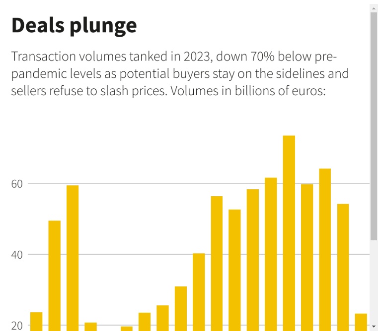 那些为数不多的交易往往是在胁迫下达成的。破产的房地产集团Signa一直在剥离资产以偿还债权人,业主Vonovia一直在出售公寓以减少债务。