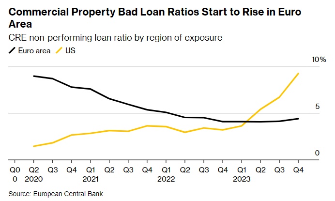 欧洲央行在报告中还表示,特别是由于对写字楼的需求下降,商业地产价格可能会进一步下跌。它补充道,随着该行业的亏损开始上升,这可能影响一些银行的资产质量。