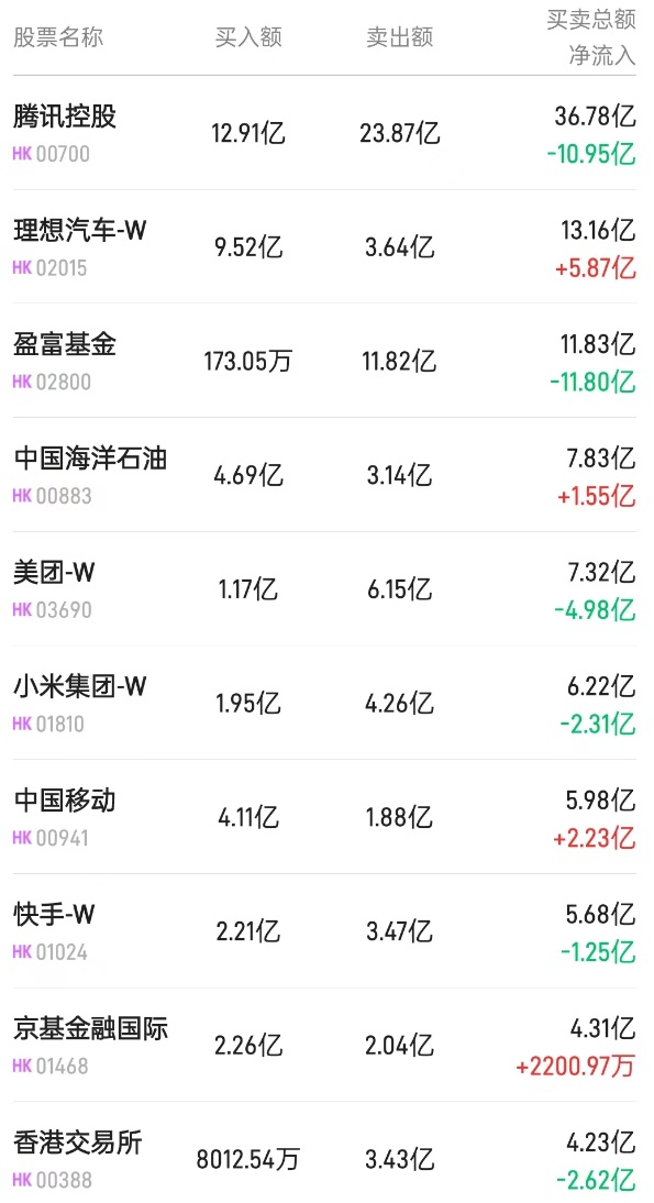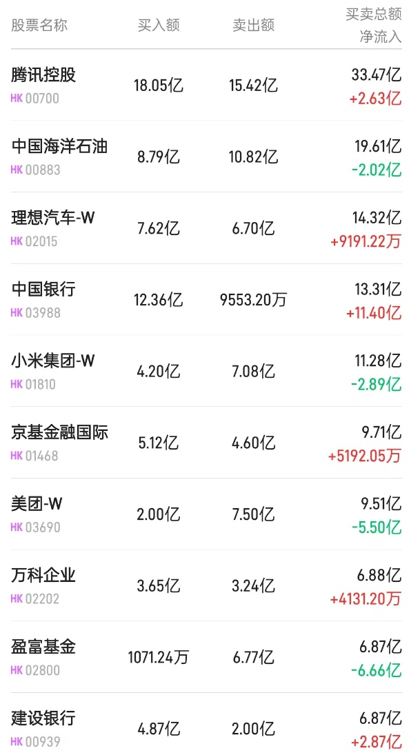 此外,京基金融国际(01468)获净买入7393万港元。而中海油(00883)、腾讯(00700)分别遭净卖出4658万、8.32亿港元。