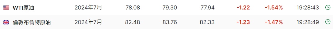 3. 截至发稿,WTI原油跌1.54%,报78.08美元/桶。布伦特原油跌1.47%,报82.4美元/桶。