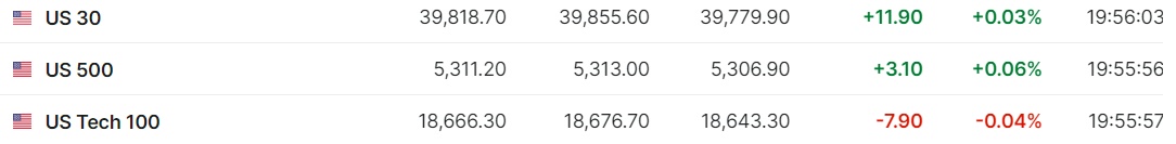 1. 5月21日(周二)美股盘前,美股三大股指期货涨跌不一。截至发稿,道指期货涨0.03%,标普500指数期货涨0.06%,纳指期货跌0.04%。