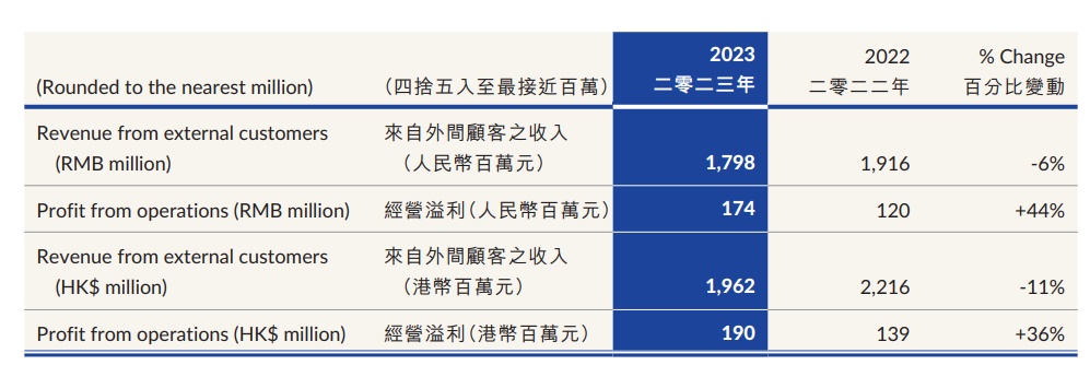 2023财年该公司营收则为63.41亿元,同比下滑2%;净利润为0.49亿元,相对于2022财年亏损表现有所好转,但不可否认的是营收则继续处于下滑趋势。其中,期内内地营收为35.09亿元,同比下滑9%。