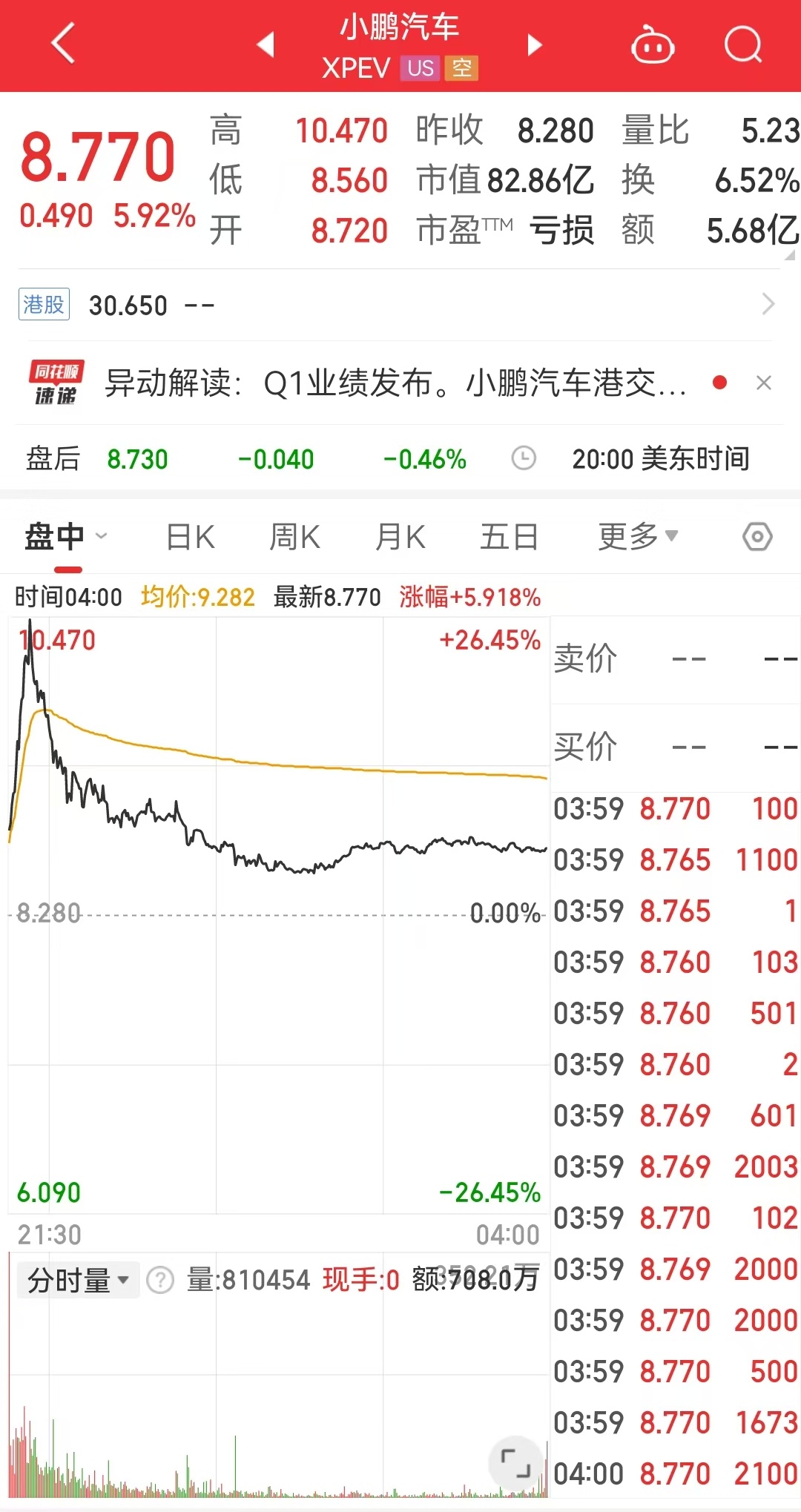 美股方面,5月21日晚,小鹏汽车(XPEV.US)股价一度涨超26%,截至美股收盘,涨幅收窄至6%以内。