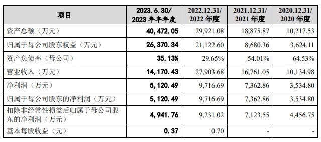 财务方面,2020年度、2021年度、2022年度以及2023年半年度,威达智实现营业收入约为1.01亿元、1.68亿元、2.79亿元以及1.42亿元;同期,实现净利润分别约为3534.8万元、7362.86万元、9716.69万元以及5120.49万元。