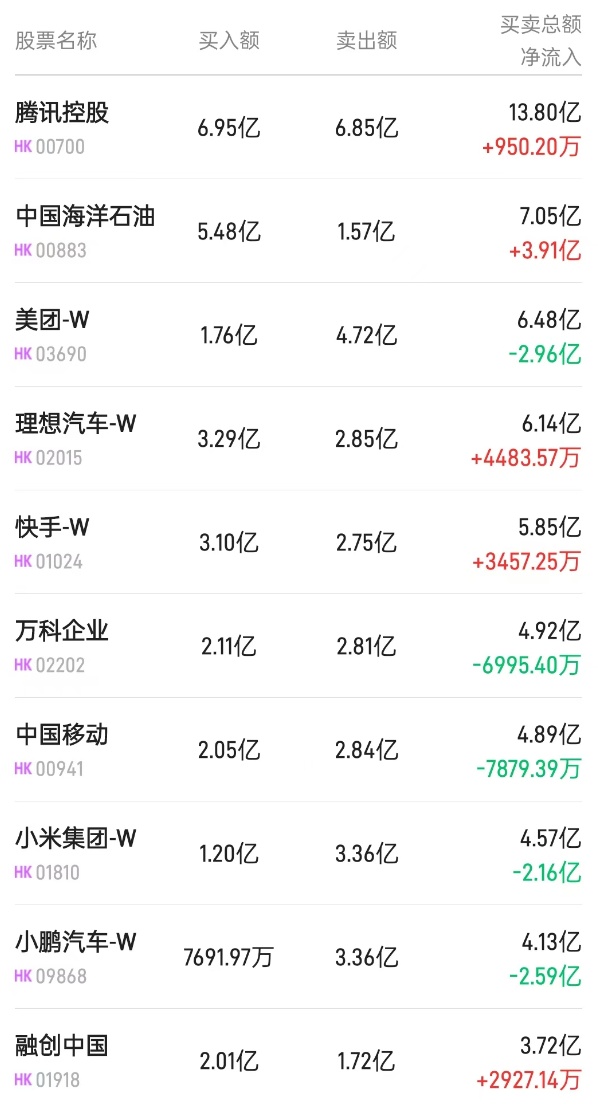 此外,京基金融国际(01468)获净买入2750万港元,而中海油(00883)遭净卖出4594万港元。