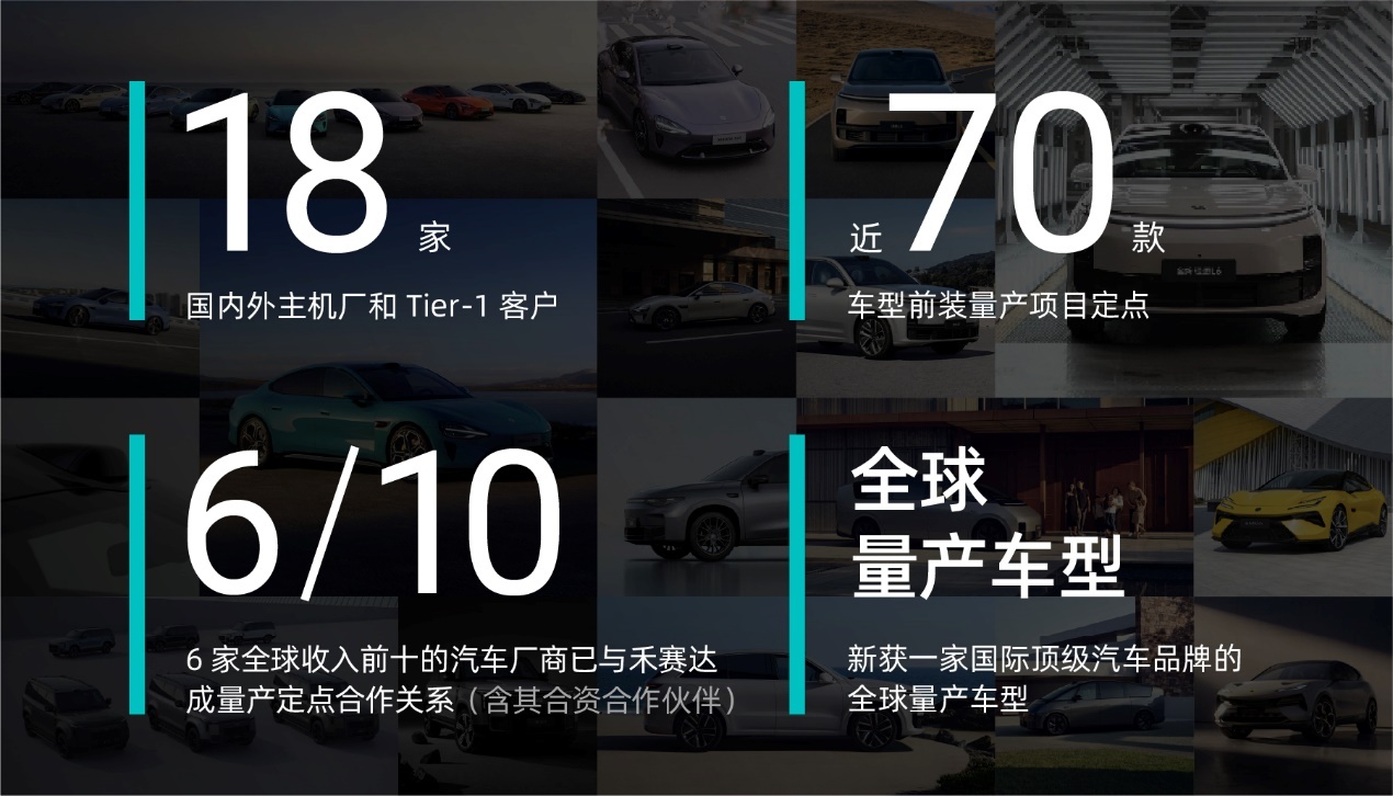 现阶段,禾赛在前装量产市场累计已获得来自18个主机厂和Tier-1客户近70款车型定点。