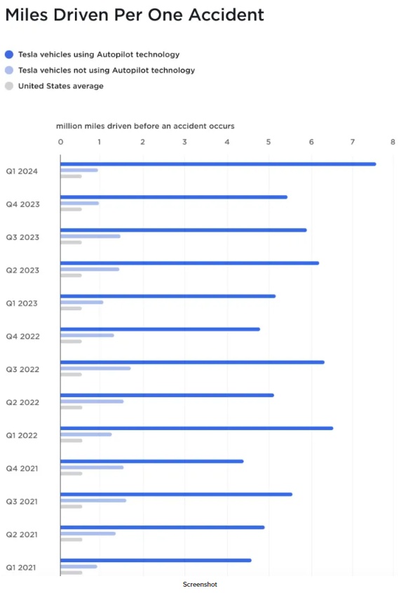 这些数据总是被批评有瑕疵。但这是特斯拉愿意公布的关于自动驾驶仪的唯一数据,因此,它仍然有助于跟踪进展。然而,特斯拉在2022年第四季度之后停止报告数据,并没有解释原因。