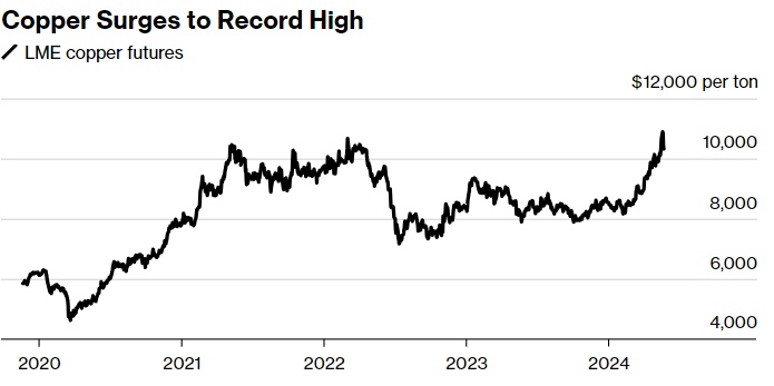 本周铜价飙升至创纪录水平,原因是人们越来越担心全球铜矿供应将无法满足电动汽车和可再生能源项目不断膨胀的需求。铜金属价格在供不应求情况下上升,这是铜矿商扩大产量的好时机,也是提振业绩的机会。