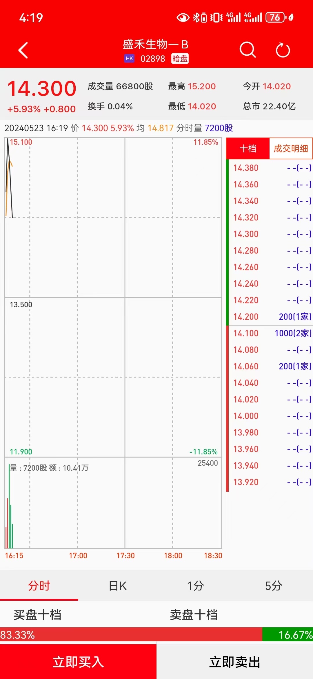 智通财经APP获悉,迈富时(02556)将于5月24日(周五)在香港挂牌。截至发稿,利弗莫尔证券暗盘交易显示报价14.30港元,较招股价13.5港元上涨5.93%。每手200股,不计手续费,每手赚160港元。