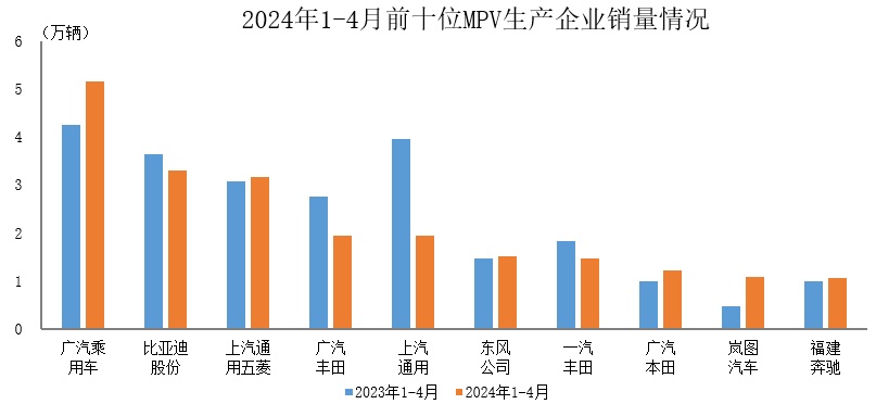智通财经APP获悉,据中国汽车工业协会统计分析,2024年1-4月,销量排名前十位的MPV生产企业共销售21.9万辆,占MPV销售总量的75.7%。