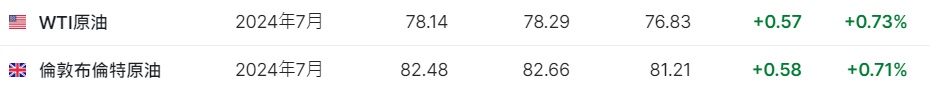 3. 截至发稿,WTI原油涨0.73%,报78.14美元/桶。布伦特原油涨0.71%,报82.48美元/桶。