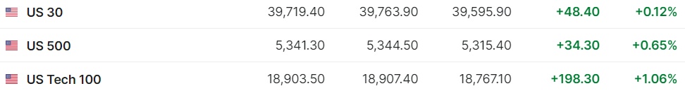 1. 5月23日(周四)美股盘前,美股三大股指期货齐涨。截至发稿,道指期货涨0.12%,标普500指数期货涨0.65%,纳指期货涨1.06%。