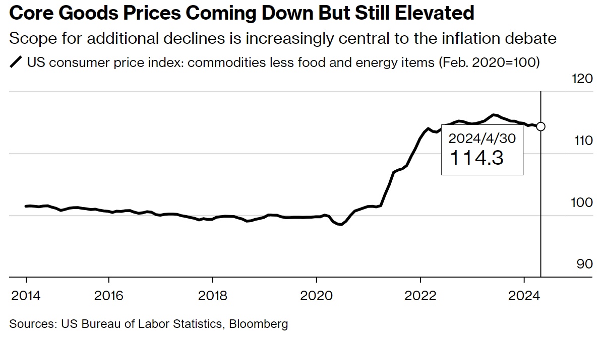 尽管如此,许多华尔街人士仍乐观地认为,随着经济供应方面的持续改善和需求压力的缓和,核心商品价格可能在未来几个月继续走低。尽管CPI指数自2023年5月达到峰值以来已经下降了1.6%,但自2020年2月以来仍上涨了14.3%。