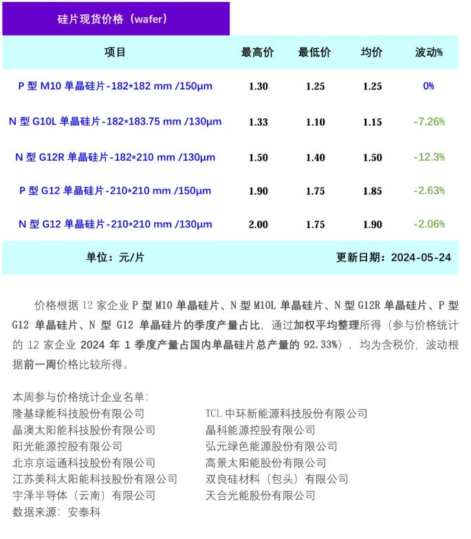 智通财经APP获悉,5月24日,硅业分会发文称,本周硅片价格呈不同幅度下跌。根据供需关系分析,目前硅片处于供求转折的关键节点,且原材料价格已经止跌,因此预期硅片价格已经接近底部。