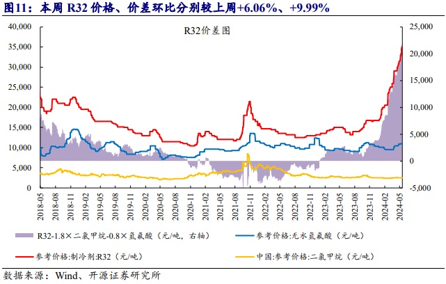 一如文首所述,东岳集团的R22产能为全球最高。而除此之外,东岳集团的制冷剂产品还包括了R32、R125、R134a等超过10种产品,而这些品种的价格自今年以来均有不同程度的上涨。