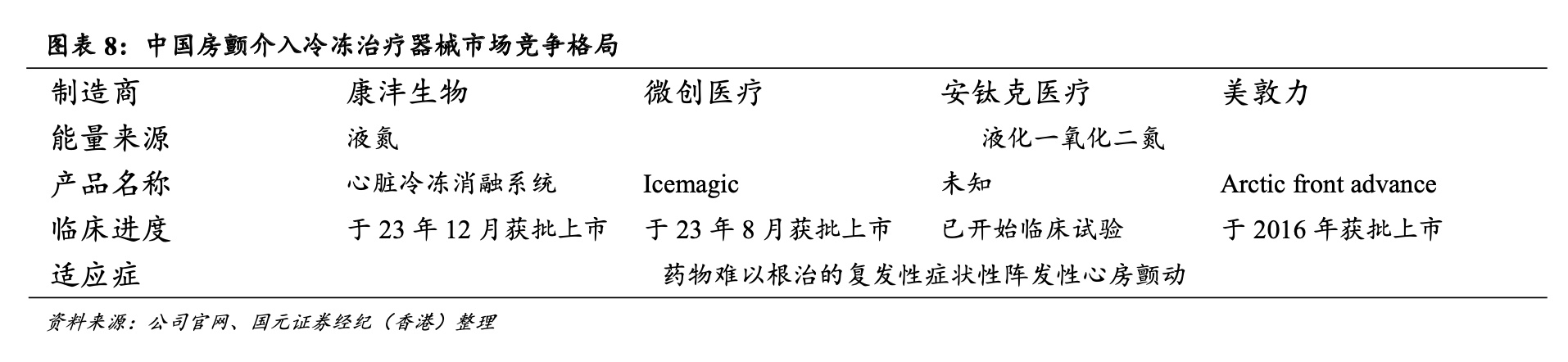 不过需要注意的是,早在2016年,美敦力生产的Arctic Front Advance作为用于治疗房颤的冷冻消融器械就已成功在中国获准商业化,康沣生物早已失去先发优势。随后公司向“中国首款获批商业化的治疗房颤的国产冷冻消融产品”的名号发起冲击,而这也随着微创的icemagic冷冻消融设备获国家药监局批准上市而破灭。在这样的背景下,康沣生物能分得几杯羹也成为未知数。