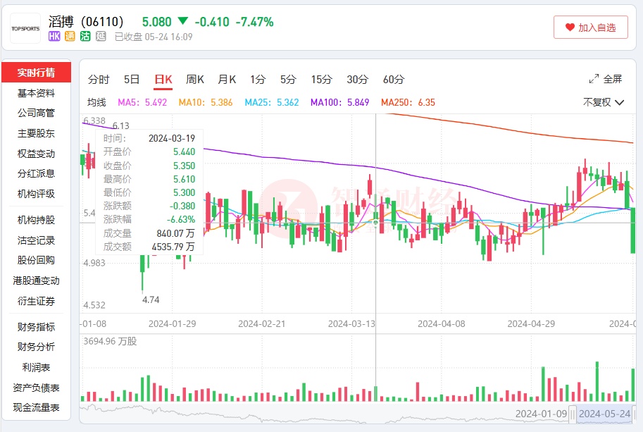 增长不及预期,如此成绩资本市场难言讨喜。截至5月24日收盘价为5.08港元,连续两个交易日累计跌幅超11%,总市值约为315亿港元。